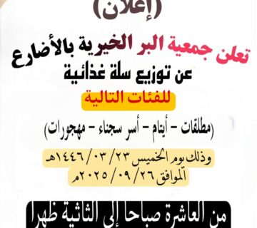 إعلان عن توزيع السلة الرمضانية (مقدمه من مؤسسة الغويري)